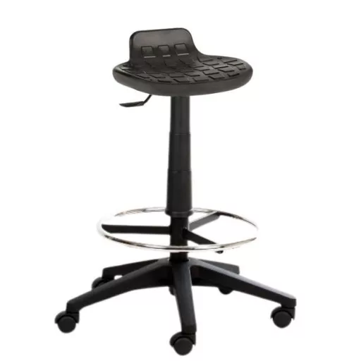 Az 1290 Zon háttámla nélküli munkaszék egy robusztus felépítésű, tartós ipari laborszék, amelyet kifejezetten intenzív, mindennapos igénybevételre terveztek. Ideális választás olyan munkahelyekre, ahol a megbízhatóság, a funkcionalitás és a hosszú élettartam alapkövetelmény – például szerelőállomásokon, műhelyekben, gyártósorok mellett vagy laboratóriumi környezetben. A háttámla nélküli kialakítás nemcsak letisztult formát eredményez, hanem maximális mozgásszabadságot is biztosít, így a felhasználó könnyedén elérheti a munkaterület különböző pontjait, akár szűk helyeken is. Ez a típus különösen jól használható olyan tevékenységeknél, ahol gyakori helyzetváltásra vagy oldalirányú mozgásra van szükség. A Zon 1290 modell egy kompakt, praktikus és higiénikusan tisztán tartható műhelyszék, amely megfelel a modern ipari és technikai munkaállomások elvárásainak.