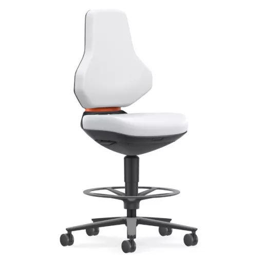 Bimos Texon 4 görgős, magasított laborszék - fehér skintec párnázat