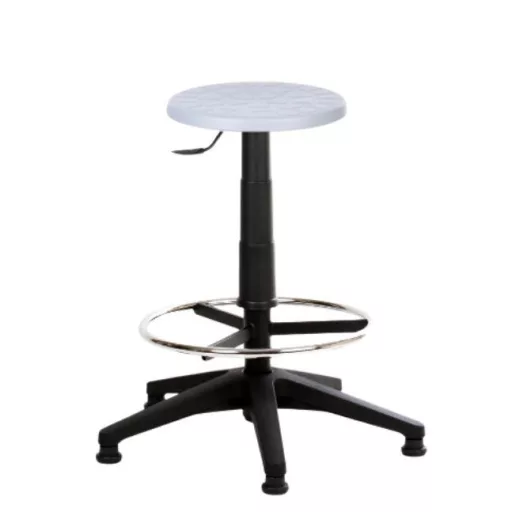 Kompakt, háttámla nélküli szék standard mechanikával és állítható ülésmagassággal. Elérhető görgős vagy fix talpas kivitelben, normál és magasított változatban. Szürke vagy fekete ülőlappal választható.