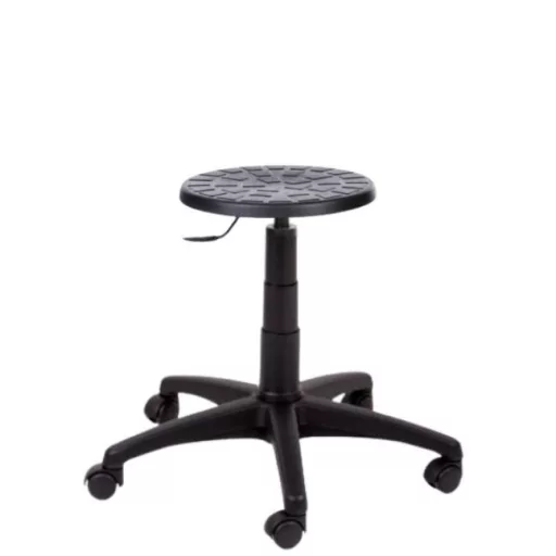 Kompakt, háttámla nélküli szék standard mechanikával és állítható ülésmagassággal. Elérhető görgős vagy fix talpas kivitelben, normál és magasított változatban. Szürke vagy fekete ülőlappal választható.