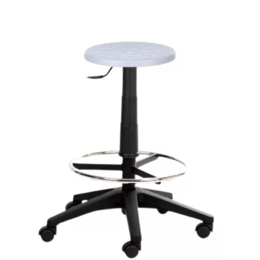 Kompakt, háttámla nélküli szék standard mechanikával és állítható ülésmagassággal. Elérhető görgős vagy fix talpas kivitelben, normál és magasított változatban. Szürke vagy fekete ülőlappal választható.