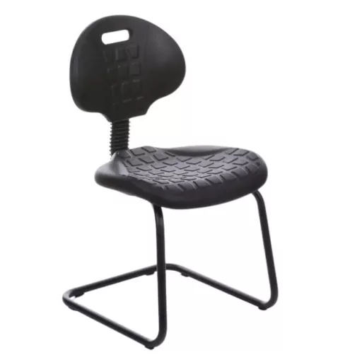 Strapabíró laborszék acélvázzal és tartós poliuretán felülettel. A háttámla magassága és mélysége állítható, így ergonomikus támaszt nyújt intenzív igénybevétel mellett is.