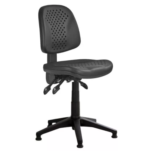 Az ülőlap és a háttámla strapabíró poliuretán anyagból készült, amely nemcsak tartós, de könnyen tisztítható is, így különösen alkalmas olyan munkahelyekre, ahol por, vegyszerek vagy más szennyeződések fordulhatnak elő.