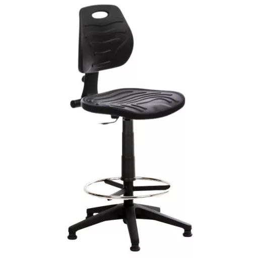 A szék kopásálló poliuretán ülőfelülettel rendelkezik, amely tartós és egyszerűen tisztán tartható. A poliuretán anyag ellenáll az ipari szennyeződéseknek, így ideális megoldás műhelyekbe, laborokba és gyártósorok mellé.