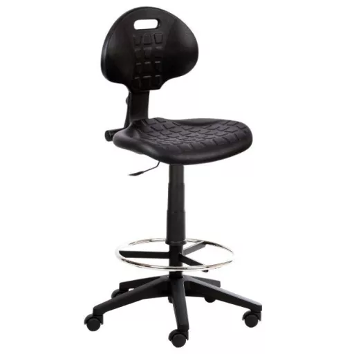Az ülő- és háttámla strapabíró poliuretánból készül, amely kiválóan ellenáll az olajoknak, vegyszereknek és egyéb szennyeződéseknek. Az anyag könnyen tisztán tartható és nem szívja magába a folyadékokat, így higiénikus marad hosszú távon is.