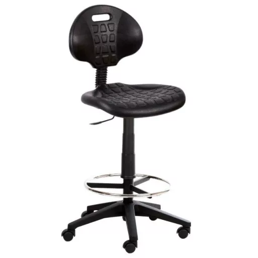 A Tulip laborszék ülőfelülete tartós poliuretánból készült, amely kiválóan ellenáll az ipari környezetek kihívásainak. Az anyag hatékony védelmet nyújt vegyszerek, olajok és egyéb szennyeződések ellen, így a tisztítása rendkívül egyszerű és gyors.